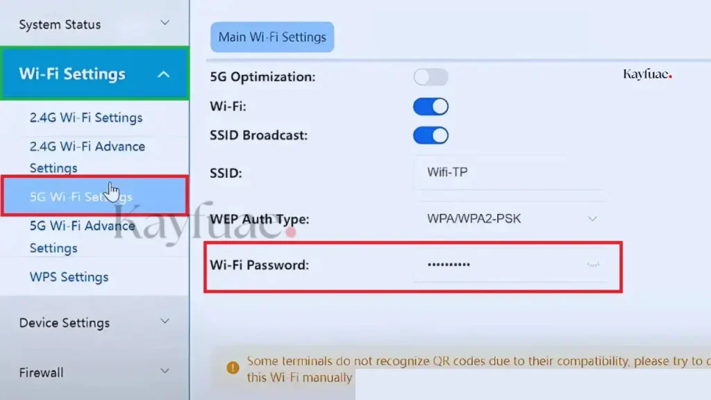 - Select WiFi-2.4G Settings or WiFi-5G Settings.